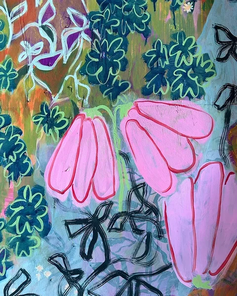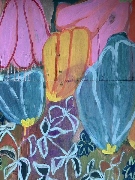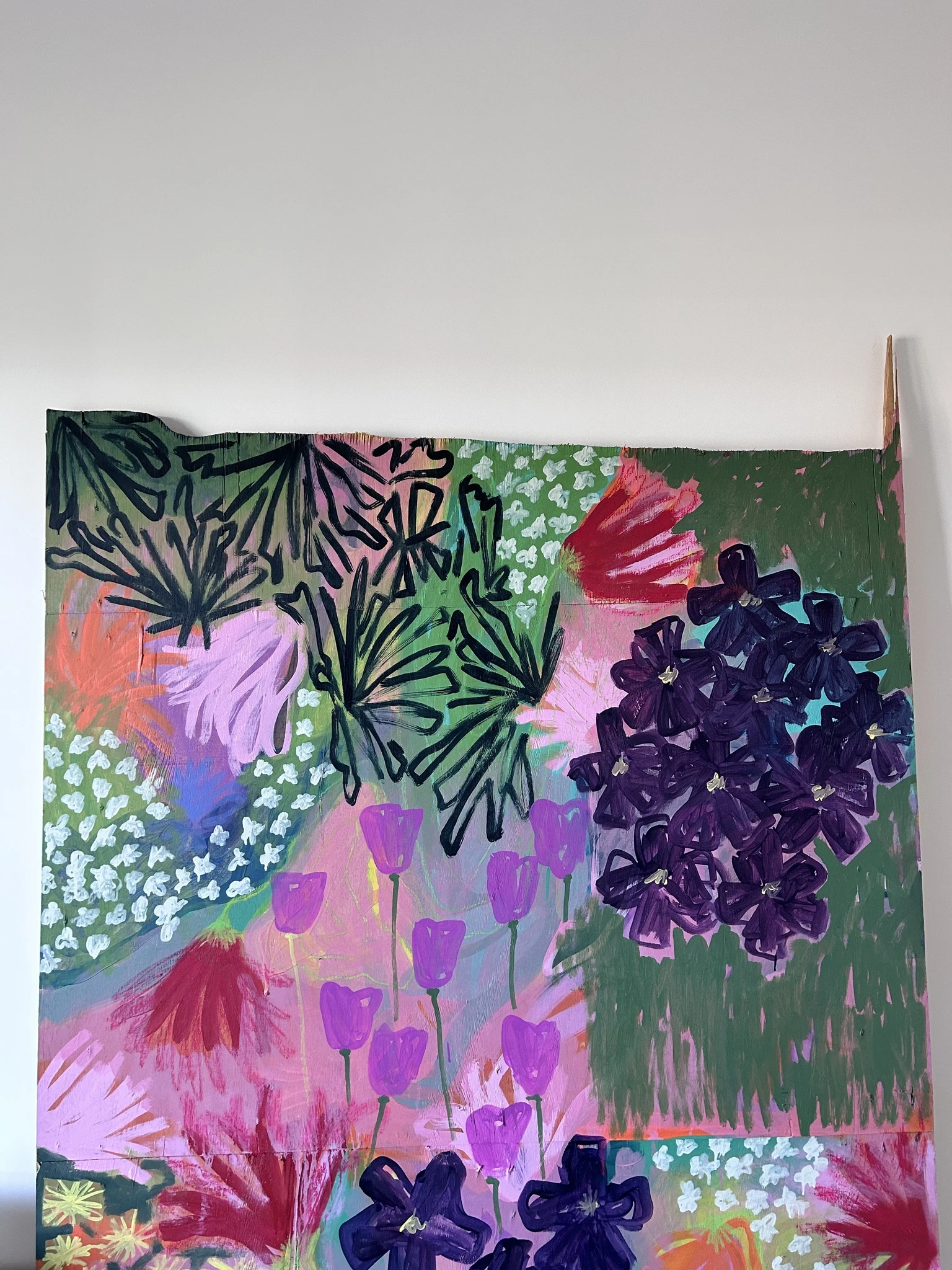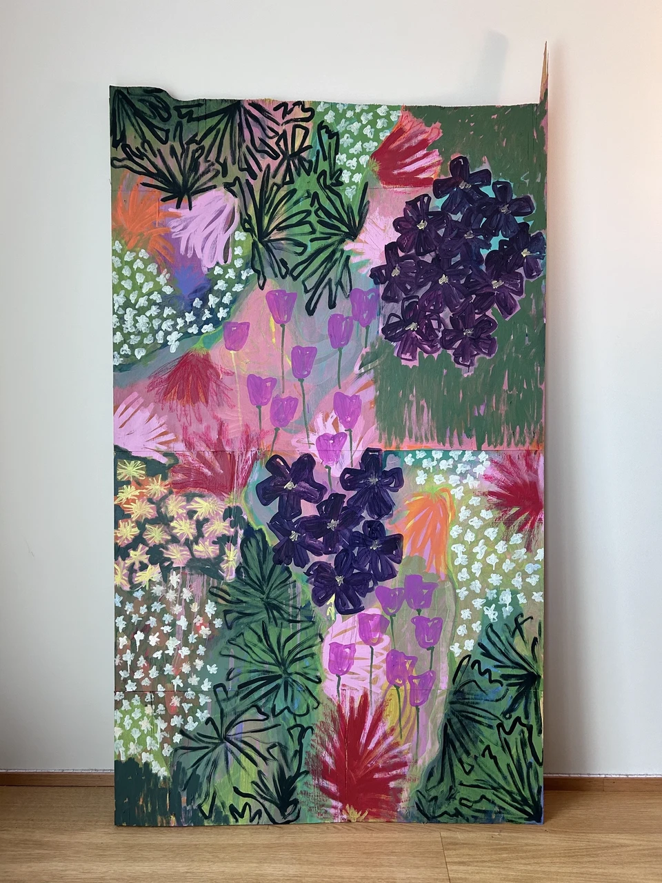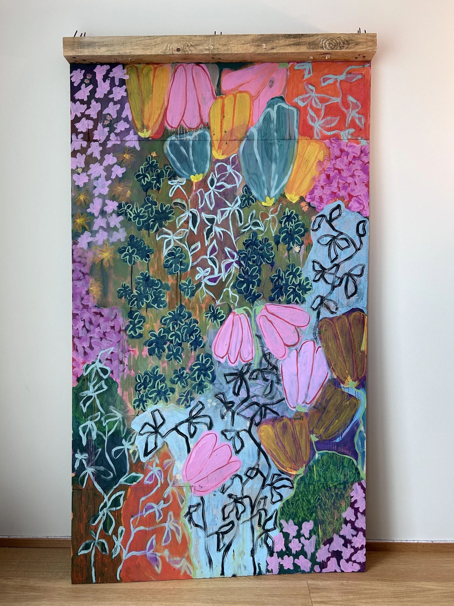 "Elu õrnad kihid" on seeria kahest 116cmx210cm maalist, mis on loodud leidmaterjalile.